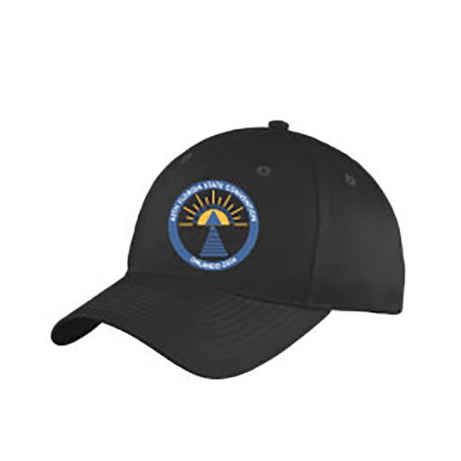Baseball cap with Full Color Embroidered Convention Logo. Fabric: 100% cotton twill; Closure: Hook and loop. One size fits all.
